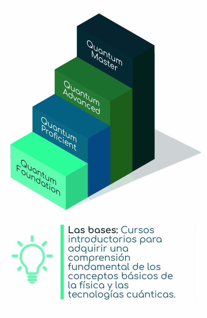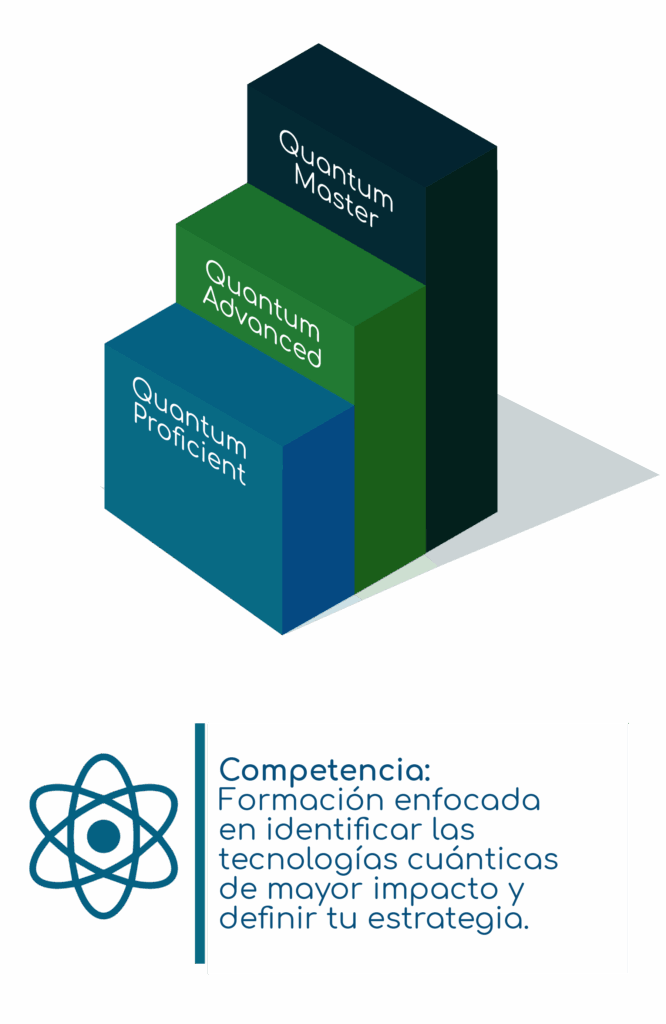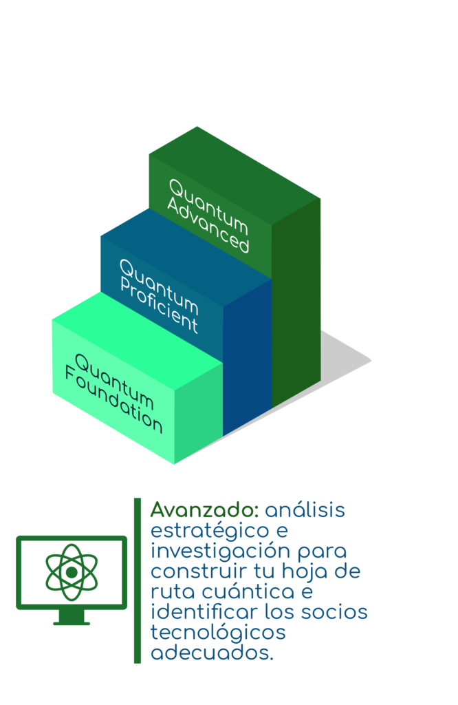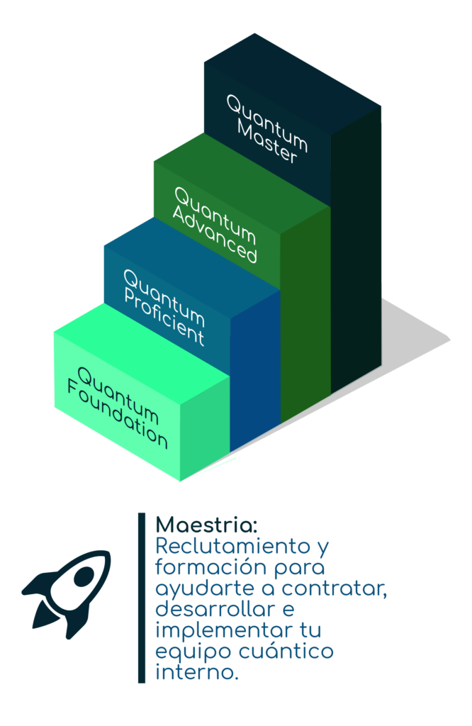 Formación a medida para las diferentes etapas desde lo básico hasta la definición de la estrategia cuántica y su implementación dentro de tu empresa o negocio.