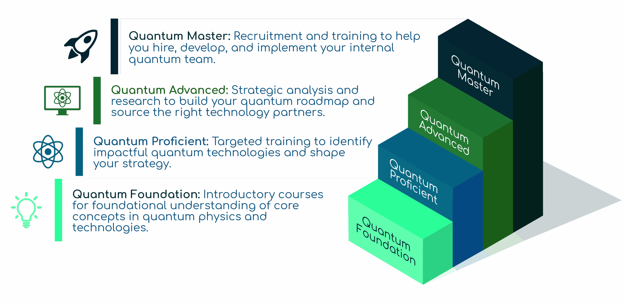 Bespoke training for the different stages from basic to defining quantum strategy and implementation within your business.